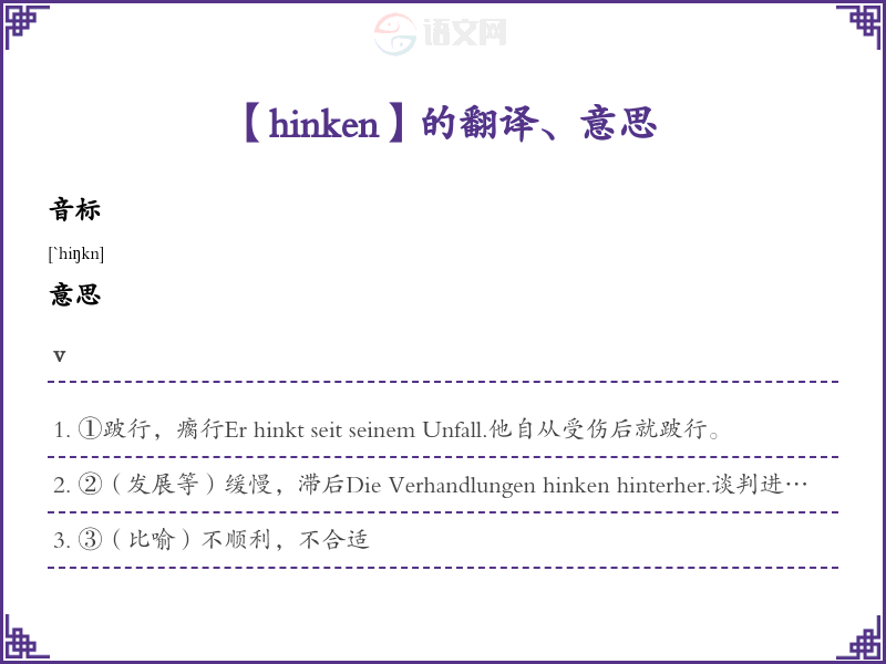 ②(发展等)缓慢,滞后Die Verhandlungen hinken hinterher.谈判进展缓慢。