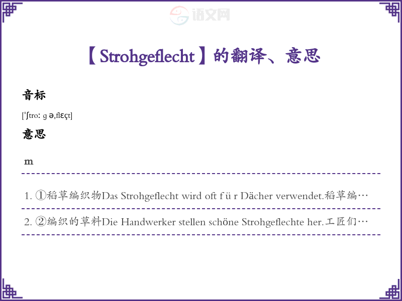 ②编织的草料Die Handwerker stellen schöne Strohgeflechte her.工匠们制作美丽的稻草编织物。