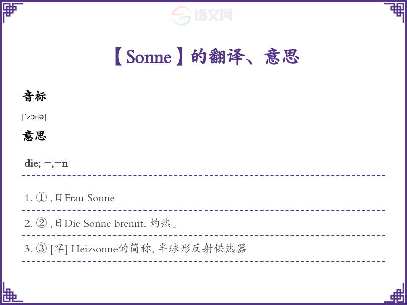 ④ [罕] Höhensonne的简称, 高山;人工灯,紫外(线)灯