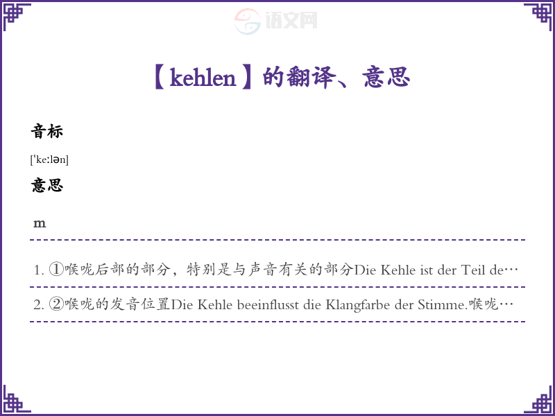 kehlen德语的中文翻译、意思