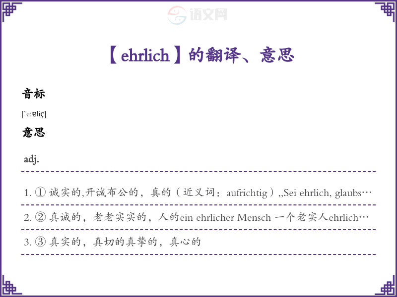 ehrlich德语的中文翻译、意思