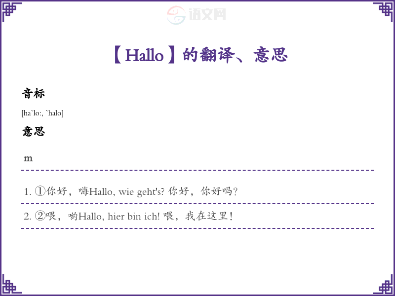 ②喂,喲Hallo, hier bin ich! 喂,我在这里!