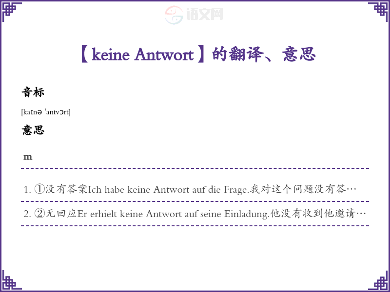 【keine Antwort】是什么意思、字义解释
