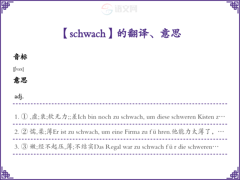 schwach德语的中文翻译、意思