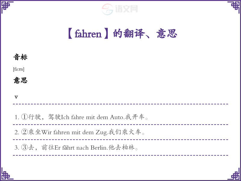 【fahren】是什么意思、字义解释