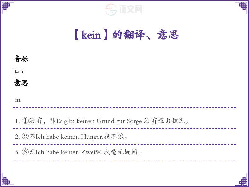 ①没有,非Es gibt keinen Grund zur Sorge.没有理由担忧。