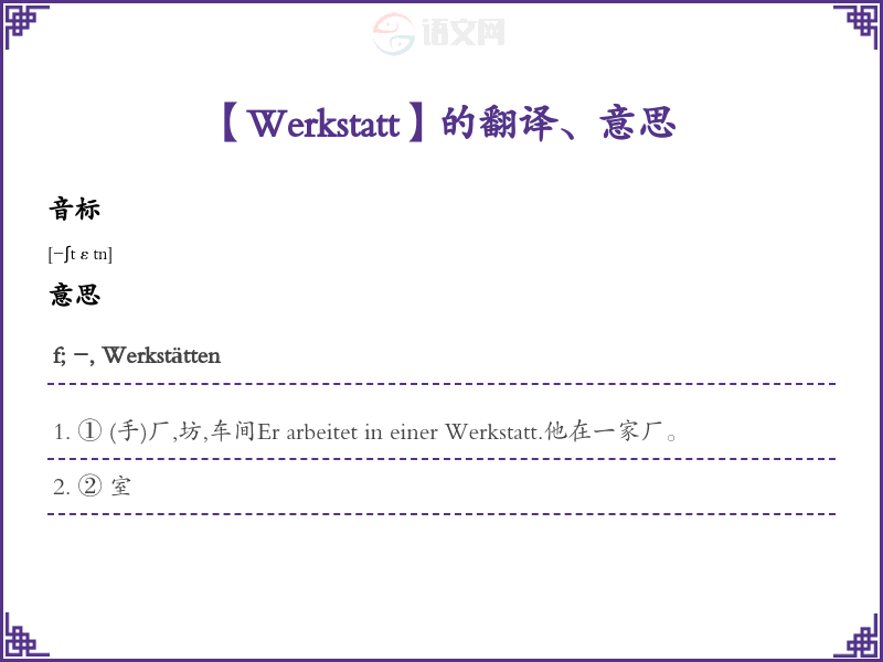 Werkstatt德语的中文翻译、意思