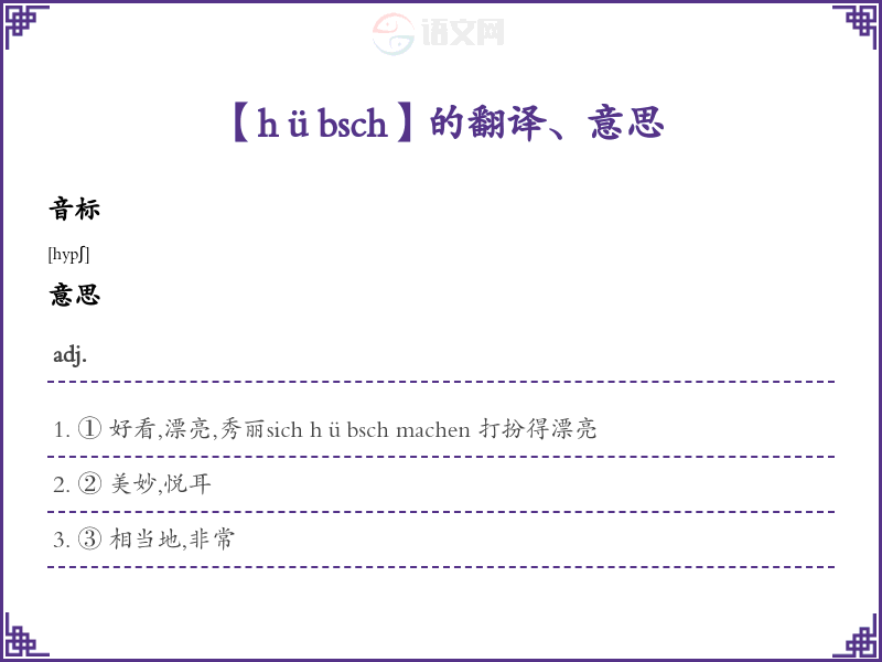 ① 好看,漂亮,秀丽sich hübsch machen 打扮得漂亮