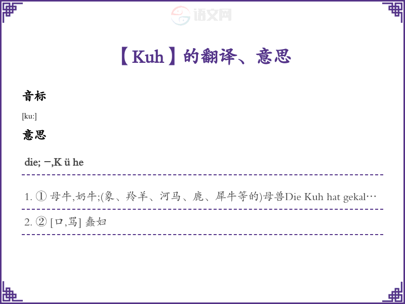 Kuh德语的中文翻译、意思