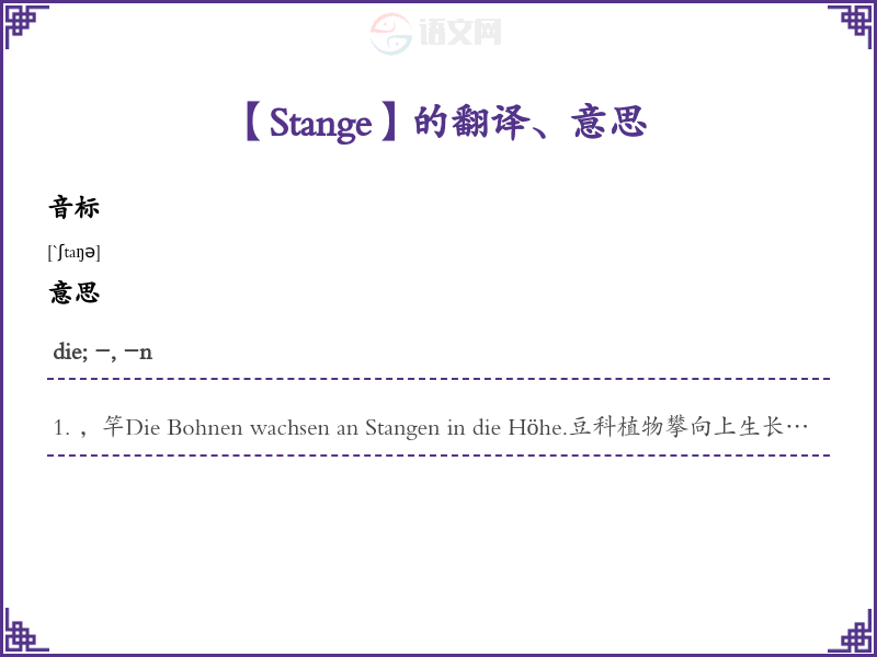 ,竿Die Bohnen wachsen an Stangen in die Höhe.豆科植物攀向上生长。mit einer Stange das Boot vom Ufer abstoßen用蒿把船撑离河岸eine Stange Zigaretten 条香烟eine Stange Geld 大笔钱ein Anzug von der Stange 成批西服