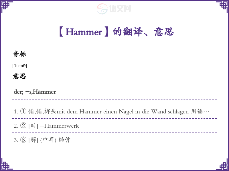Hammer德语的中文翻译、意思