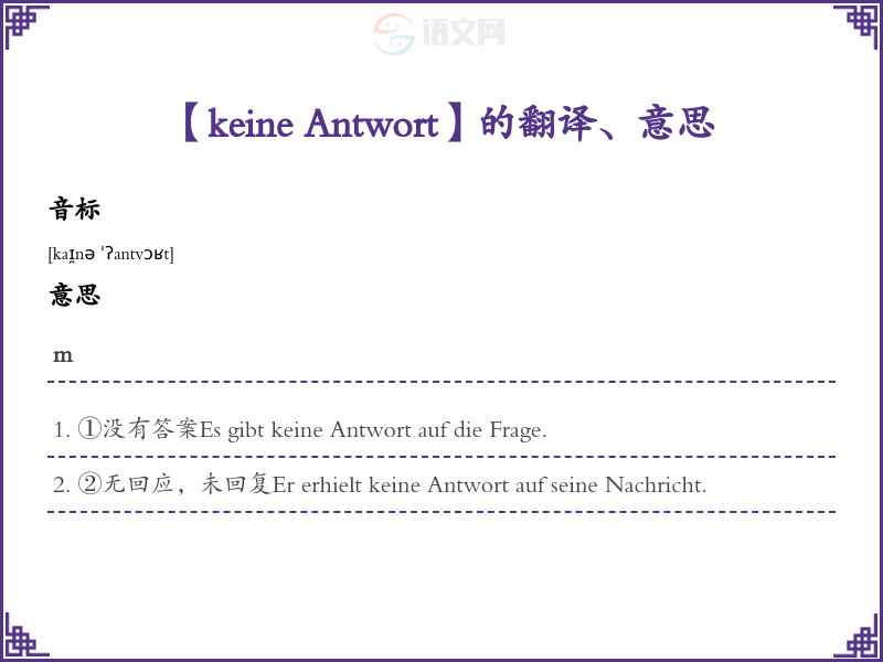 【keine Antwort】是什么意思、字义解释