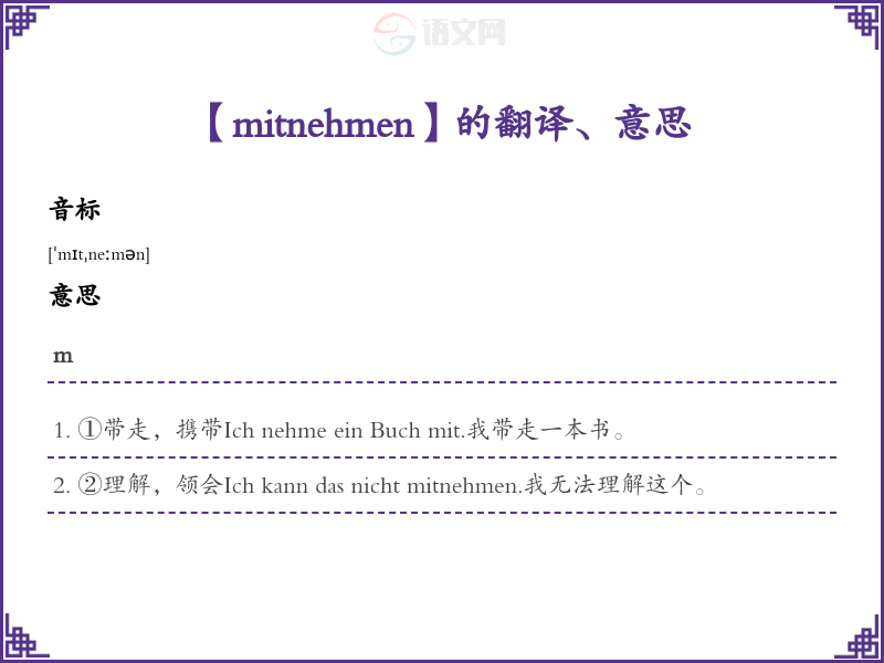 【mitnehmen】是什么意思、字义解释