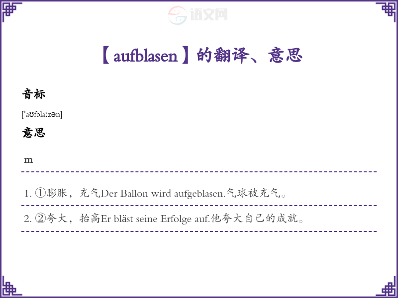 aufblasen德语的中文翻译、意思