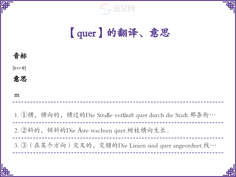 quer德语的中文翻译、意思