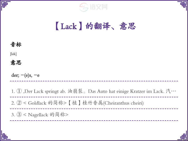 Lack德语的中文翻译、意思