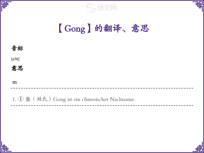 ① 龔(姓氏)Gong ist ein chinesischer Nachname.