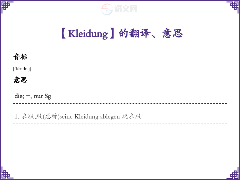 衣服,服(总称)seine Kleidung ablegen 脱衣服