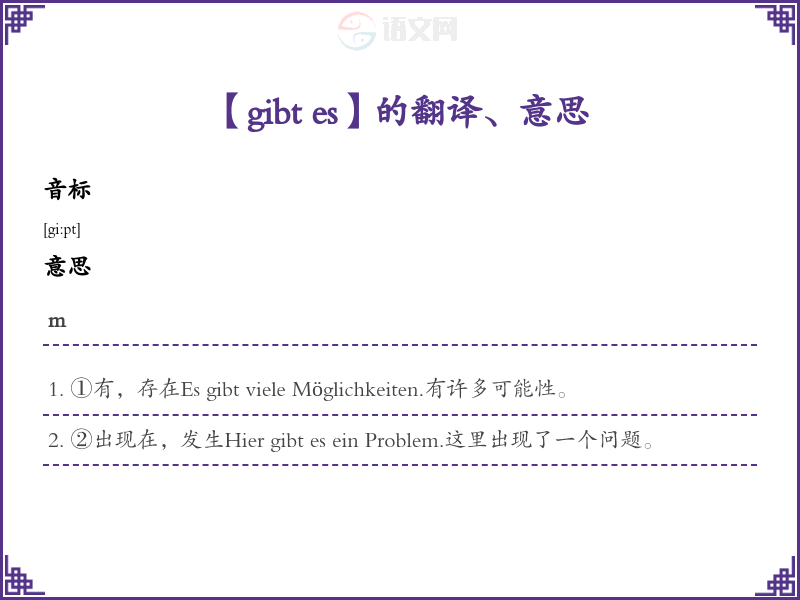 ②出现在,发生Hier gibt es ein Problem.这里出现了一个问题。