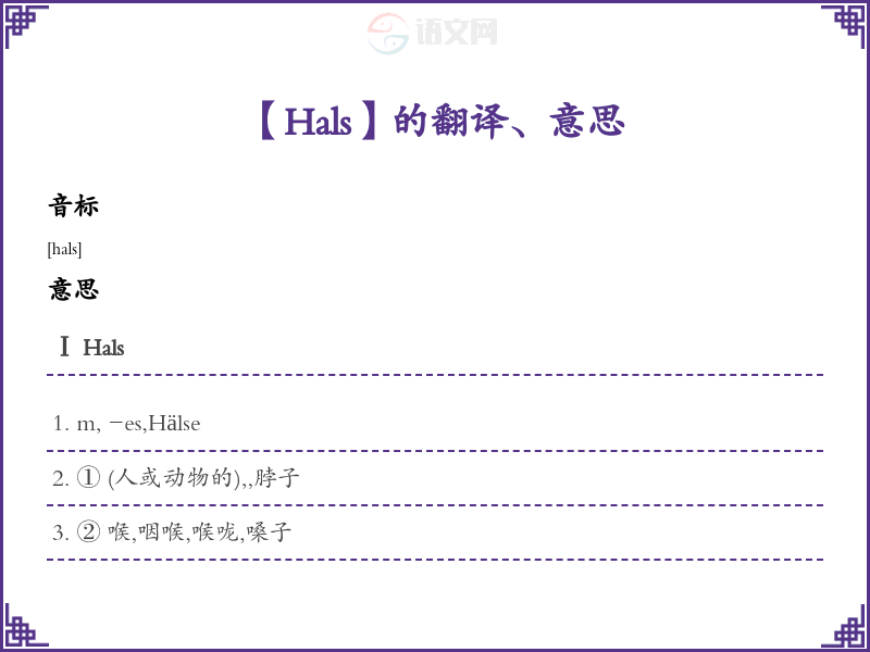 Hals德语的中文翻译、意思
