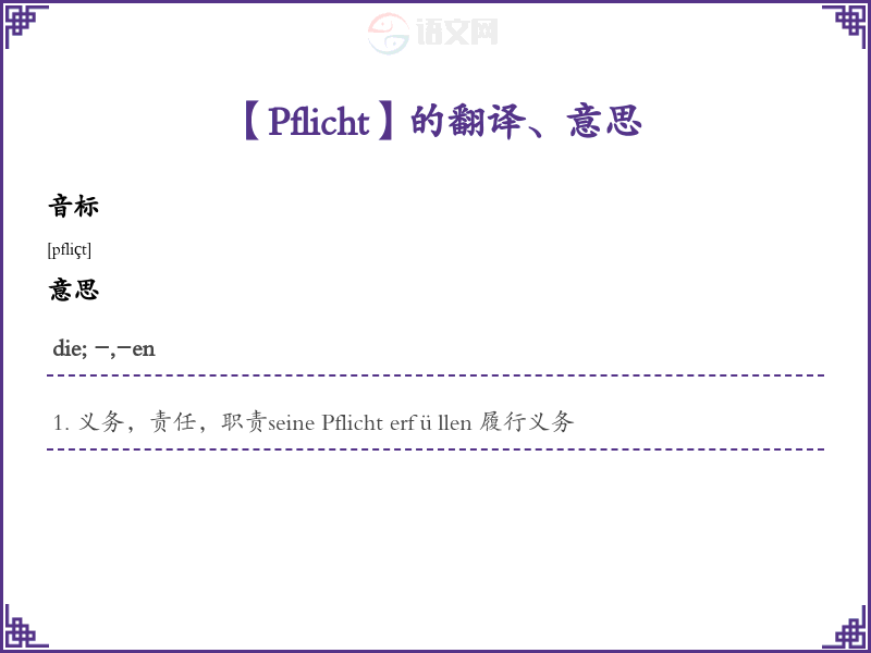 义务,责任,职责seine Pflicht erfüllen 履行义务