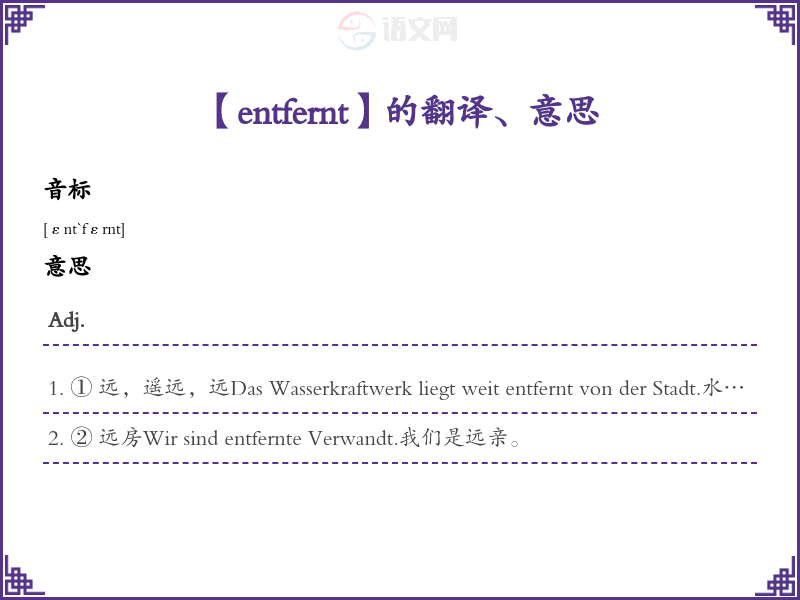 ② 远房Wir sind entfernte Verwandt.我们是远亲。
