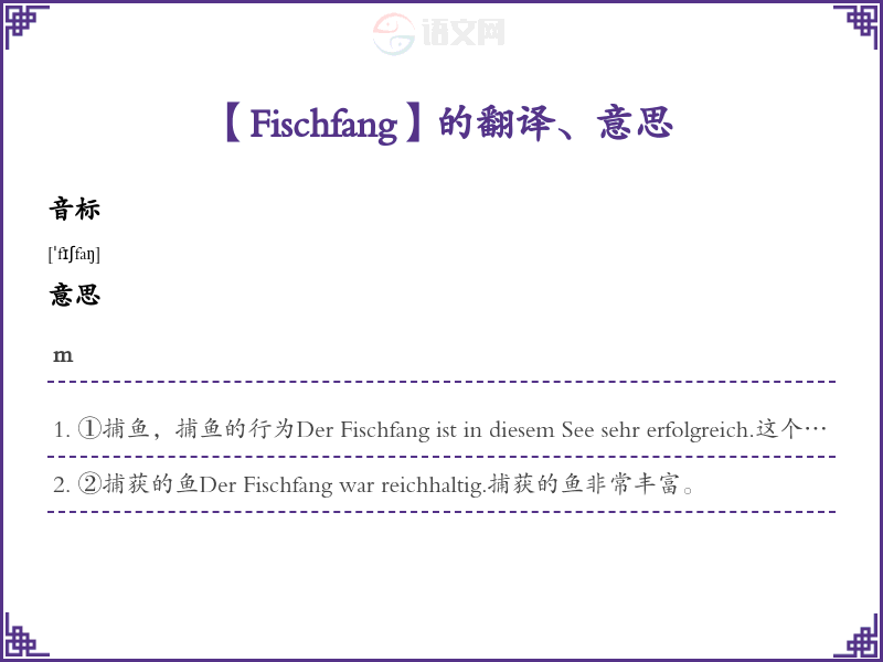 Fischfang德语的中文翻译、意思
