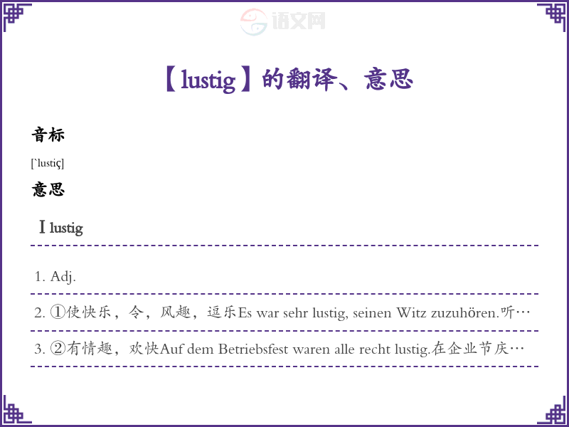 lustig德语的中文翻译、意思