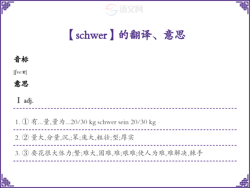 schwer德语的中文翻译、意思