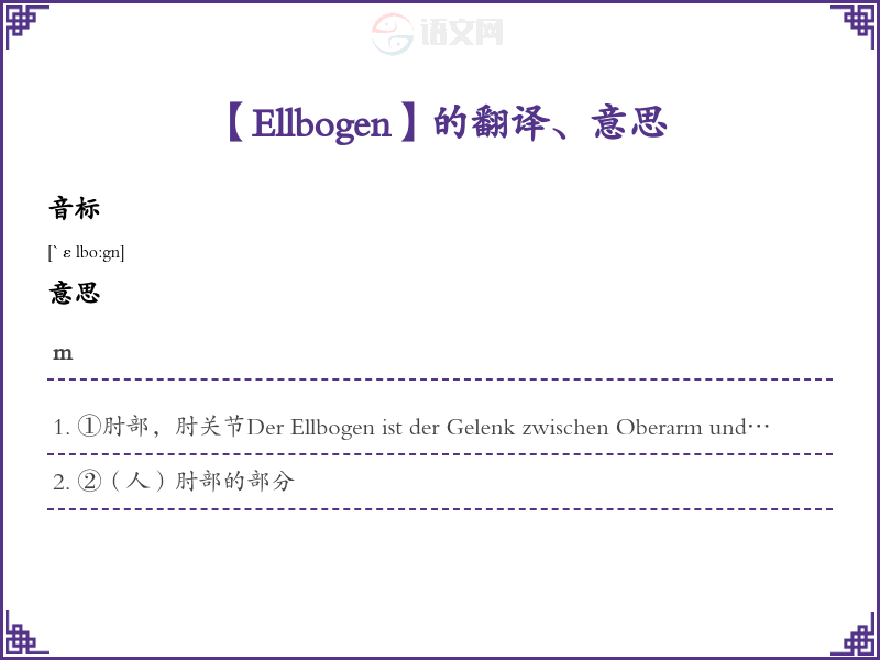 ①肘部,肘关节Der Ellbogen ist der Gelenk zwischen Oberarm und Unterarm.肘是上臂和前臂之间的关节。