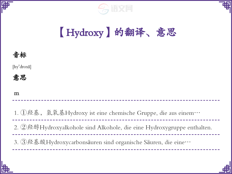 ①羟基,氢氧基Hydroxy ist eine chemische Gruppe, die aus einem Sauerstoff- und einem Wasserstoffatom besteht.