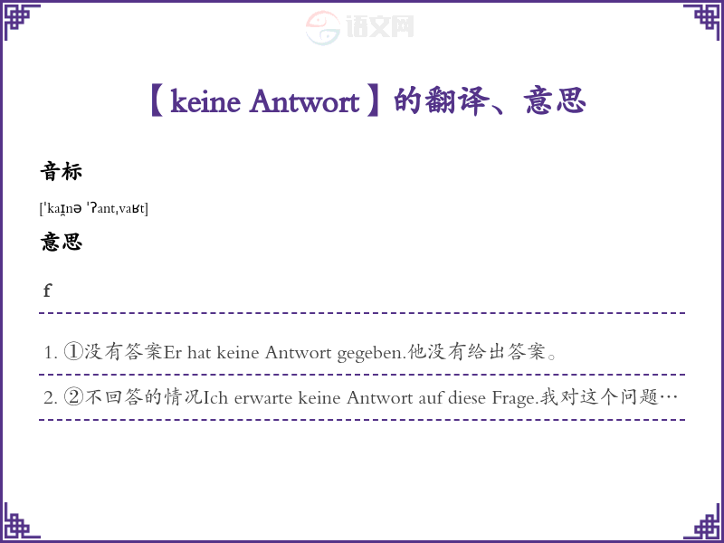 【keine Antwort】是什么意思、字义解释