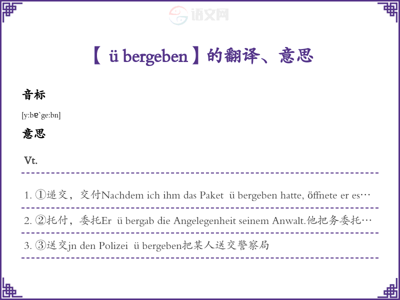 übergeben德语的中文翻译、意思