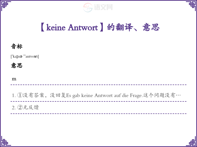①没有答案,没回复Es gab keine Antwort auf die Frage.这个问题没有答案。