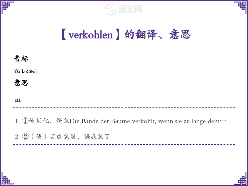 verkohlen德语的中文翻译、意思