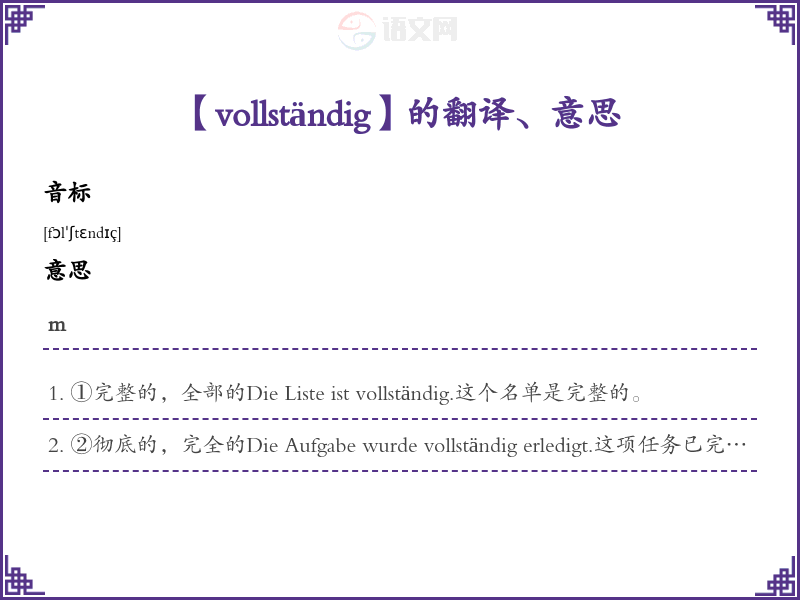 【vollständig】是什么意思、字义解释
