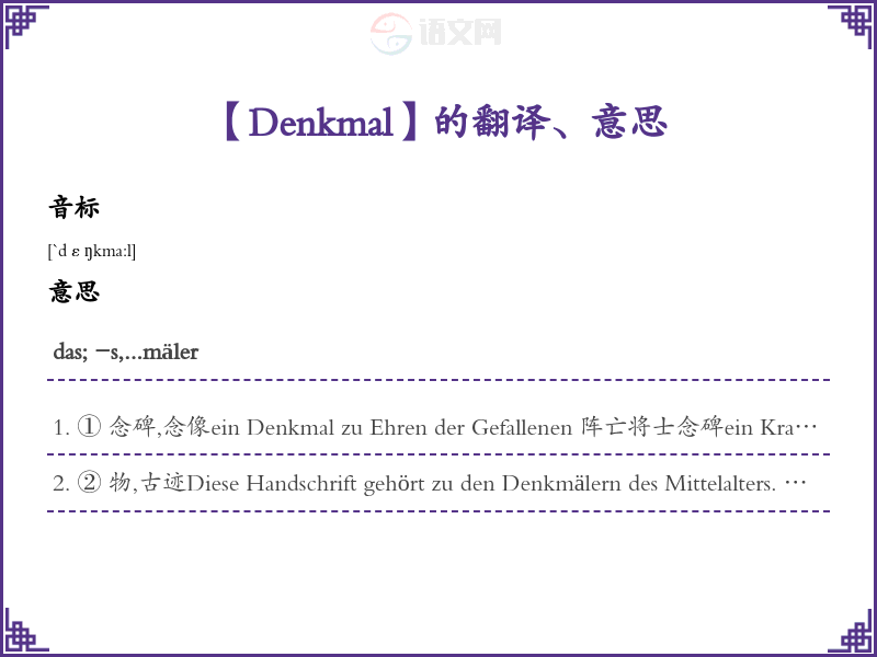 Denkmal德语的中文翻译、意思