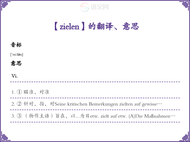 zielen德语的中文翻译、意思