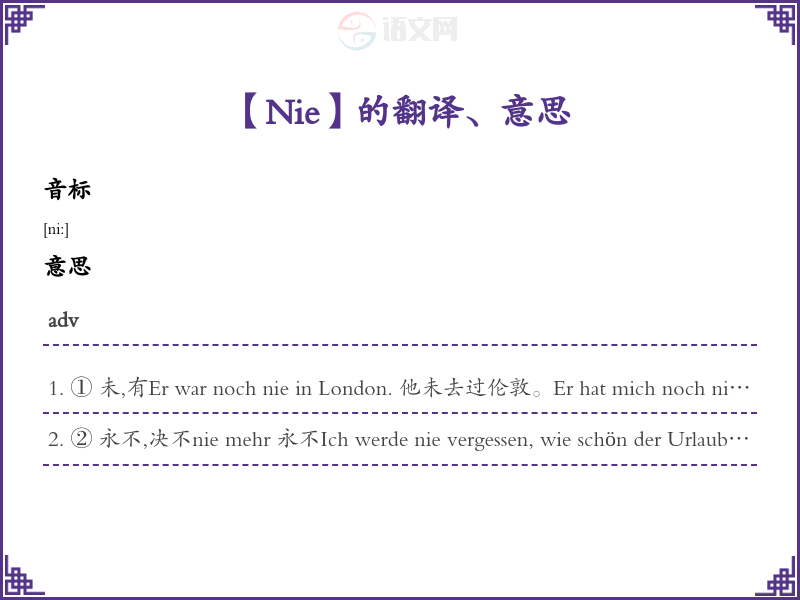 Nie德语的中文翻译、意思