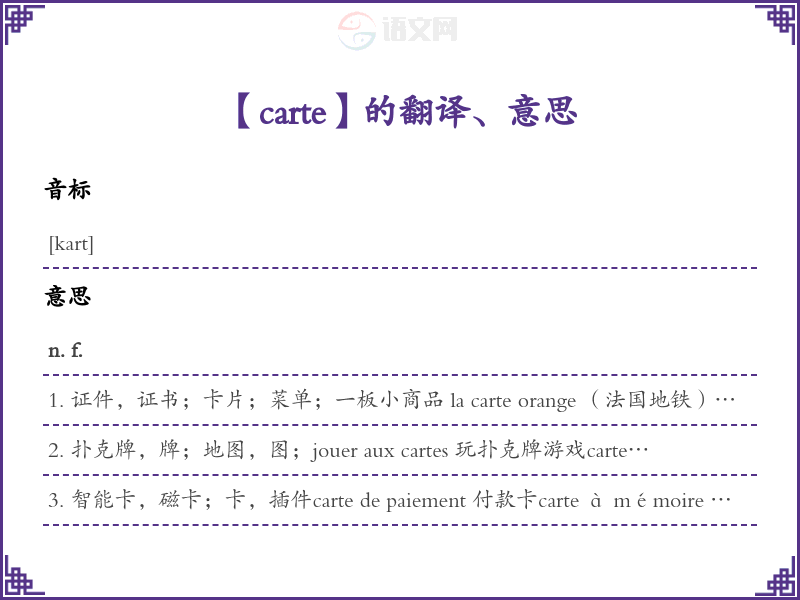 carte法语的中文翻译、意思