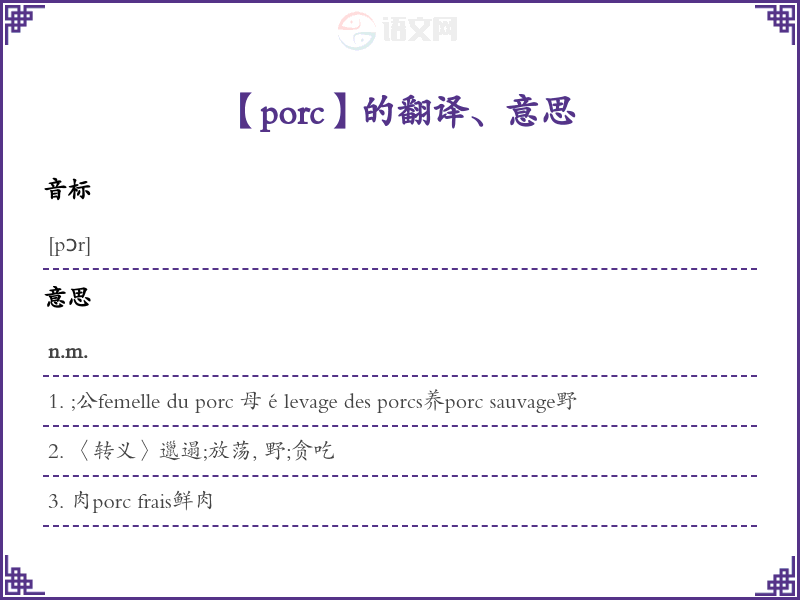 【porc】 联想 名词变化: 形容词变化: 近义词 同音、近音词 联想词