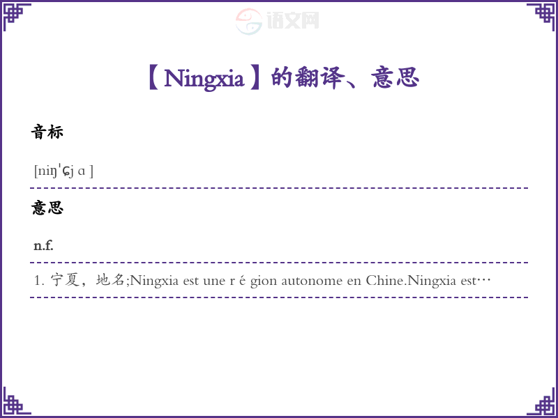 Ningxia法语的中文翻译、意思