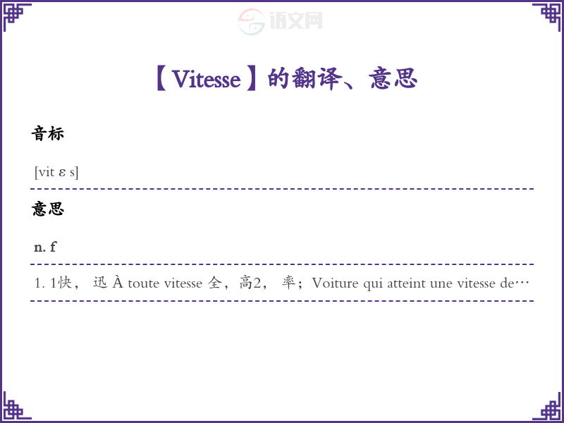 Vitesse法语的中文翻译、意思