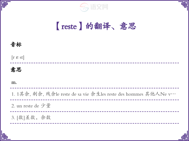 reste法语的中文翻译、意思