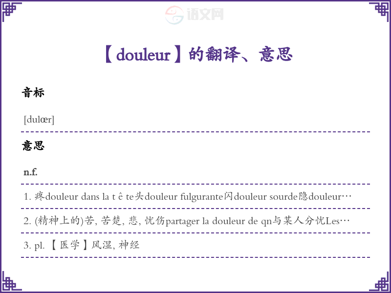 【douleur】 联想: 形容词变化: 副词变化: 近义词: 反义词: 联想词