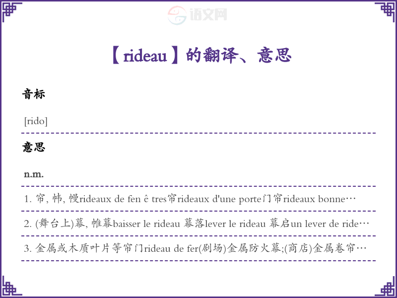 rideau法语的中文翻译、意思