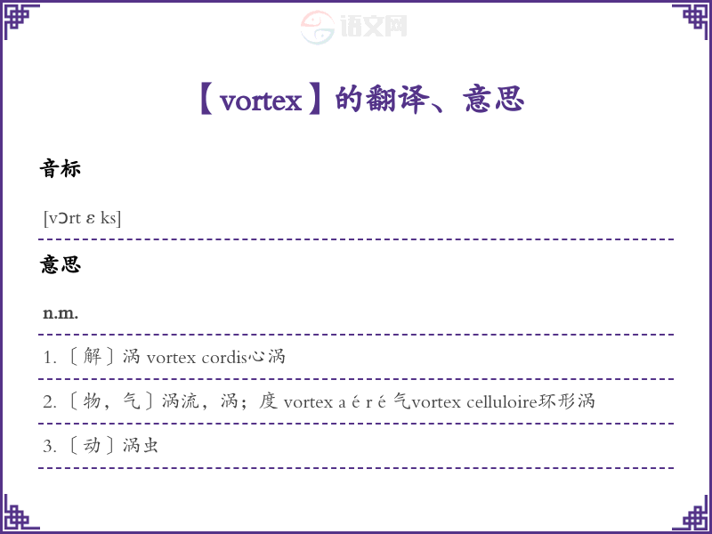 2. 〔物,气〕涡流,涡;度 vortex aéré气vortex celluloire环形涡