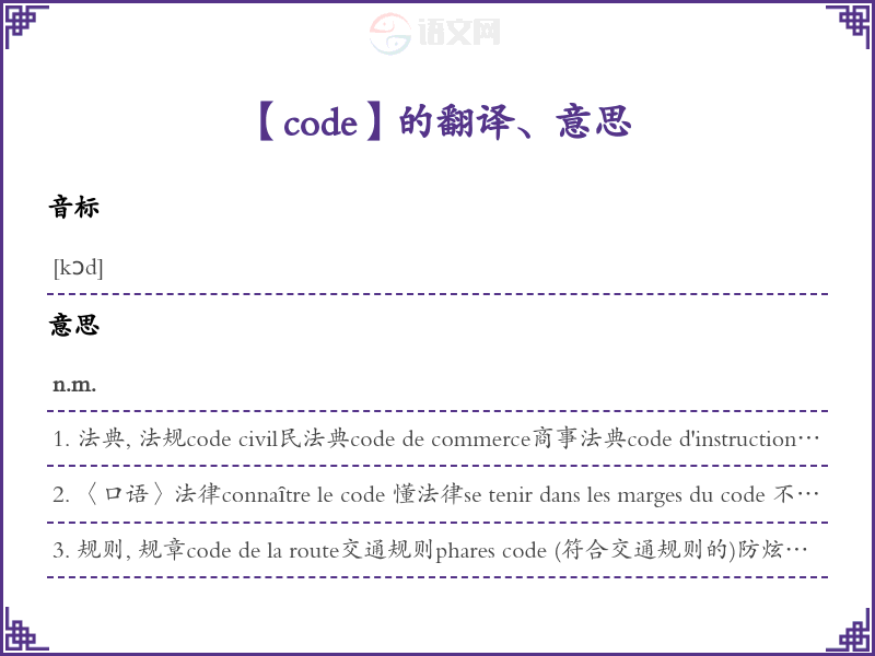code法语的中文翻译、意思