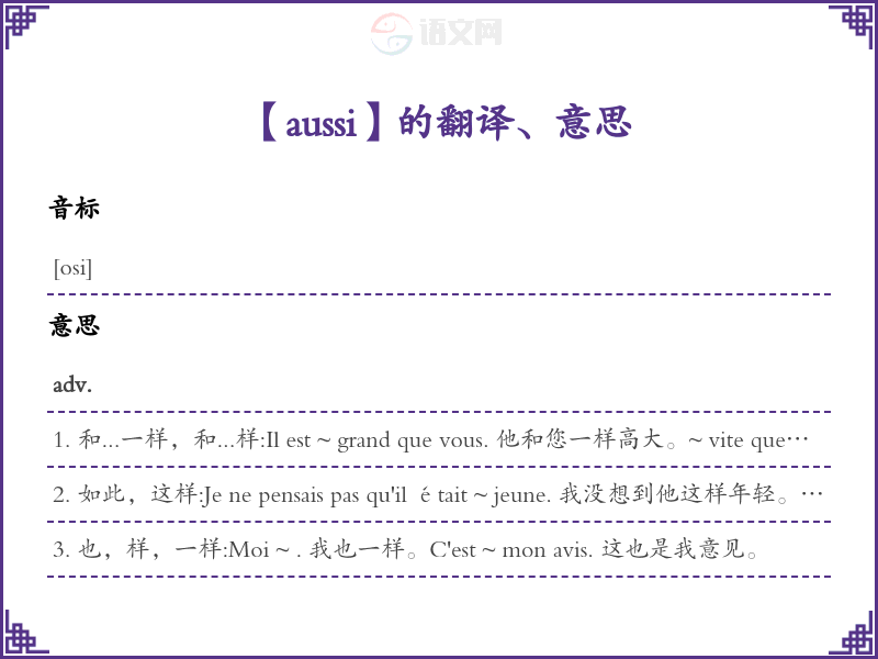 aussi法语的中文翻译、意思