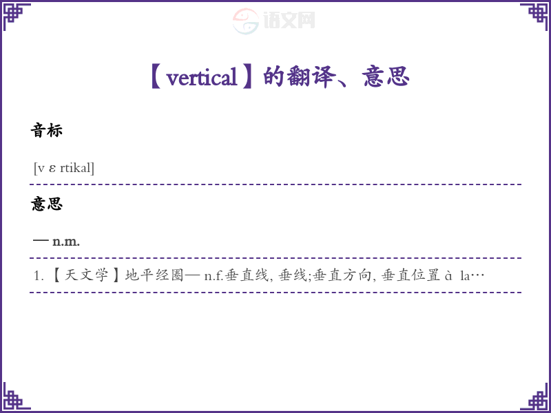 【vertical】是什么意思、字义解释
